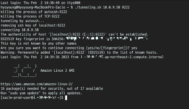 4) autossh를 이용하여 로컬 9522 포트 통한 Tunneling 실행