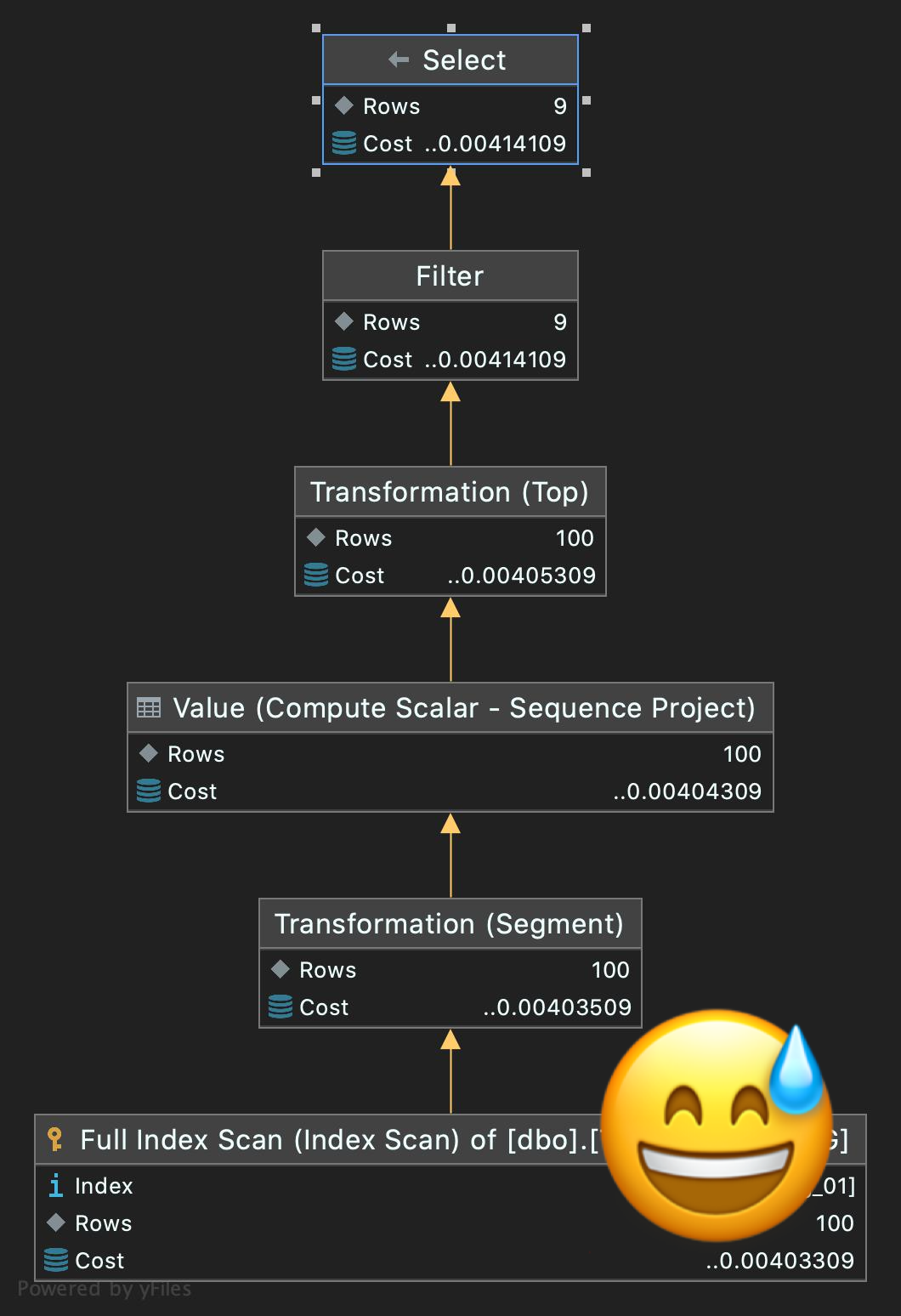그림 2) OFFSET - FETCH 적용하여 단일 쿼리로 수행한 경우 실행 계획