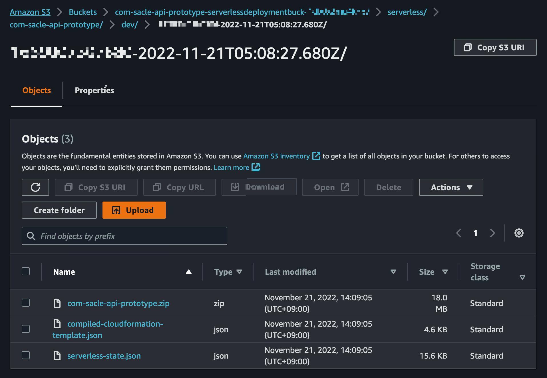 S3에 새로운 Bucket이 생기고, zip 파일 등이 업로드 되었습니다.