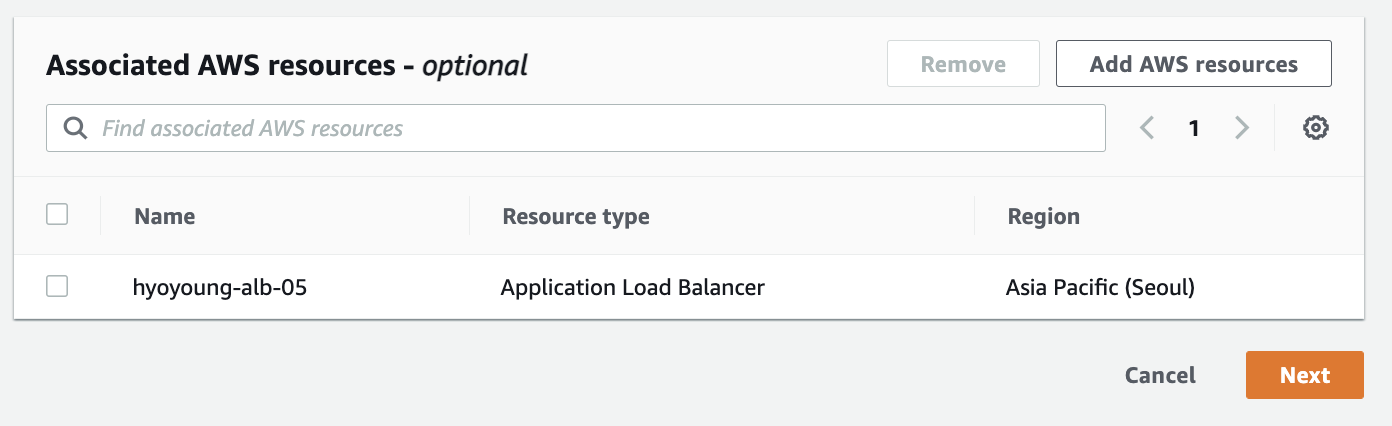 WAF를 적용할 리소스를 선택합니다.