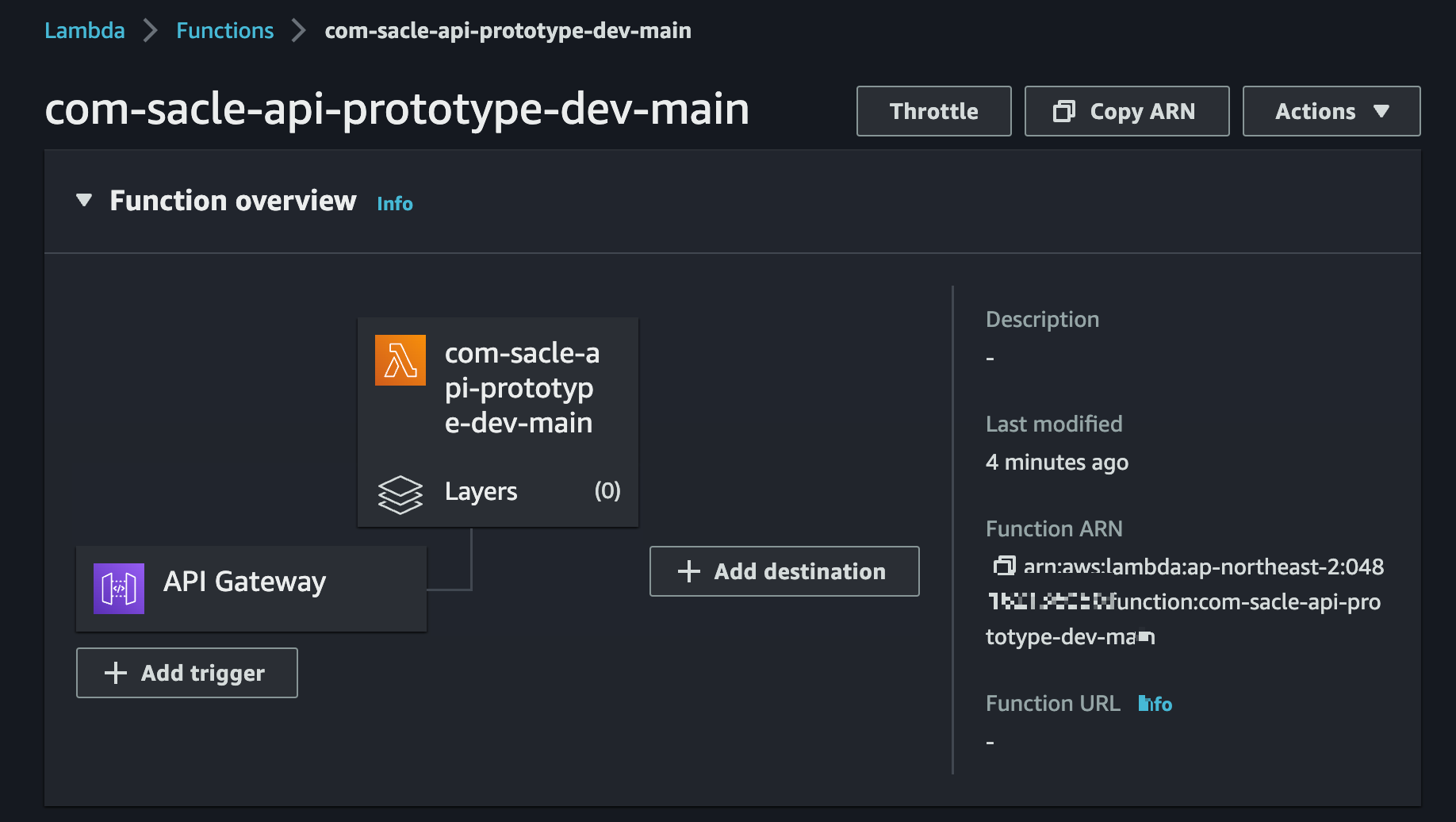 Lambda function에도 새로운 함수가 생성되었습니다.