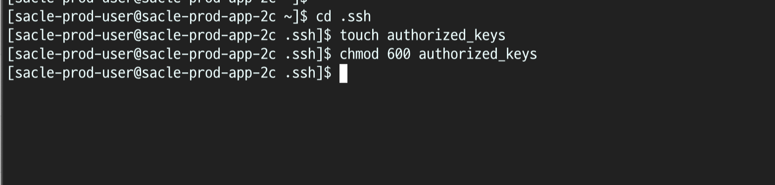 .ssh/authorized_keys 파일을 생성하고 권한을 600으로 변경합니다.