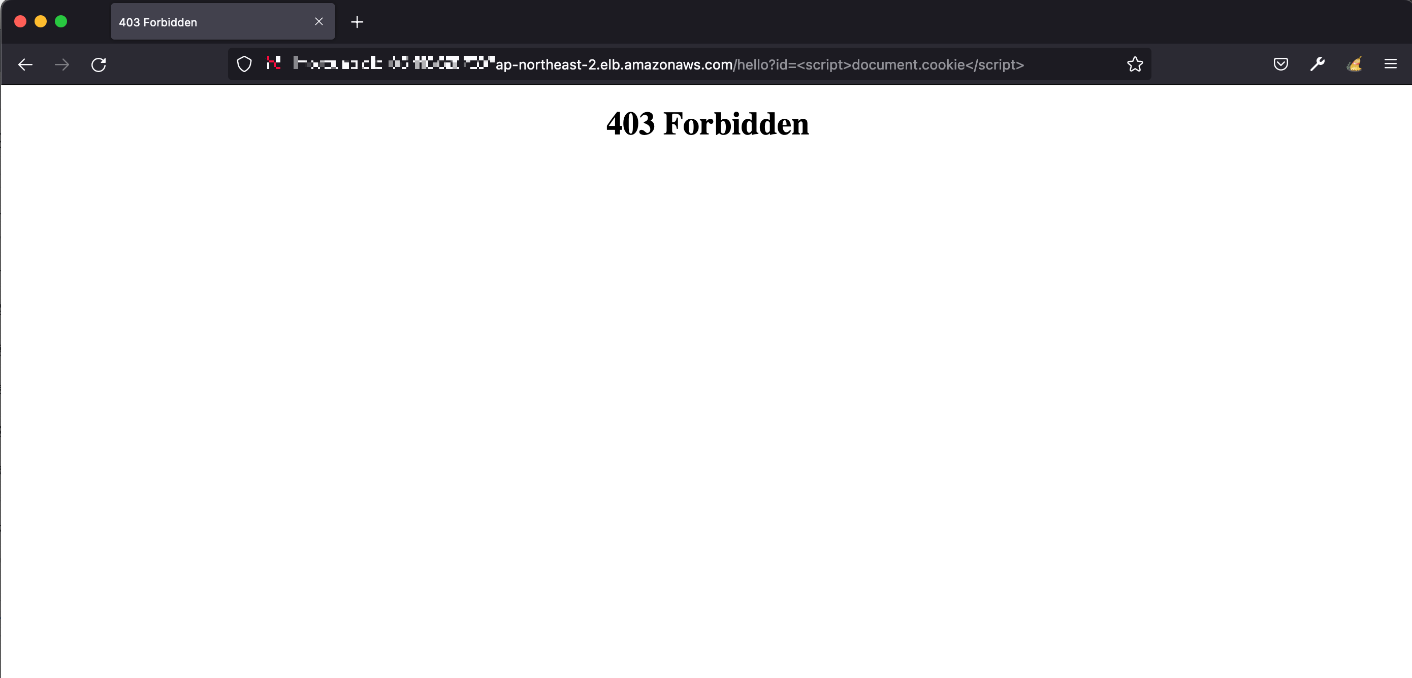 Web ACL을 적용한 후 ALB를 대상으로 XSS 테스트를 해보면 403 Forbidden이 확인됩니다.