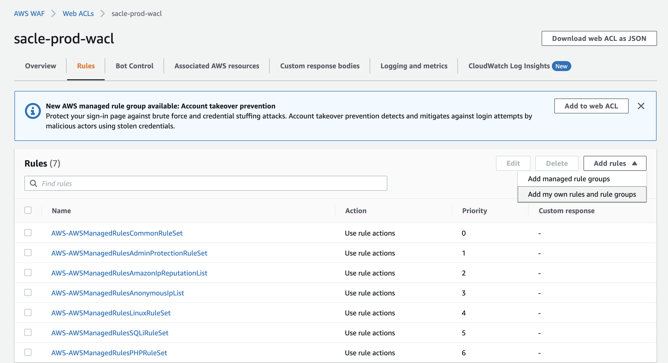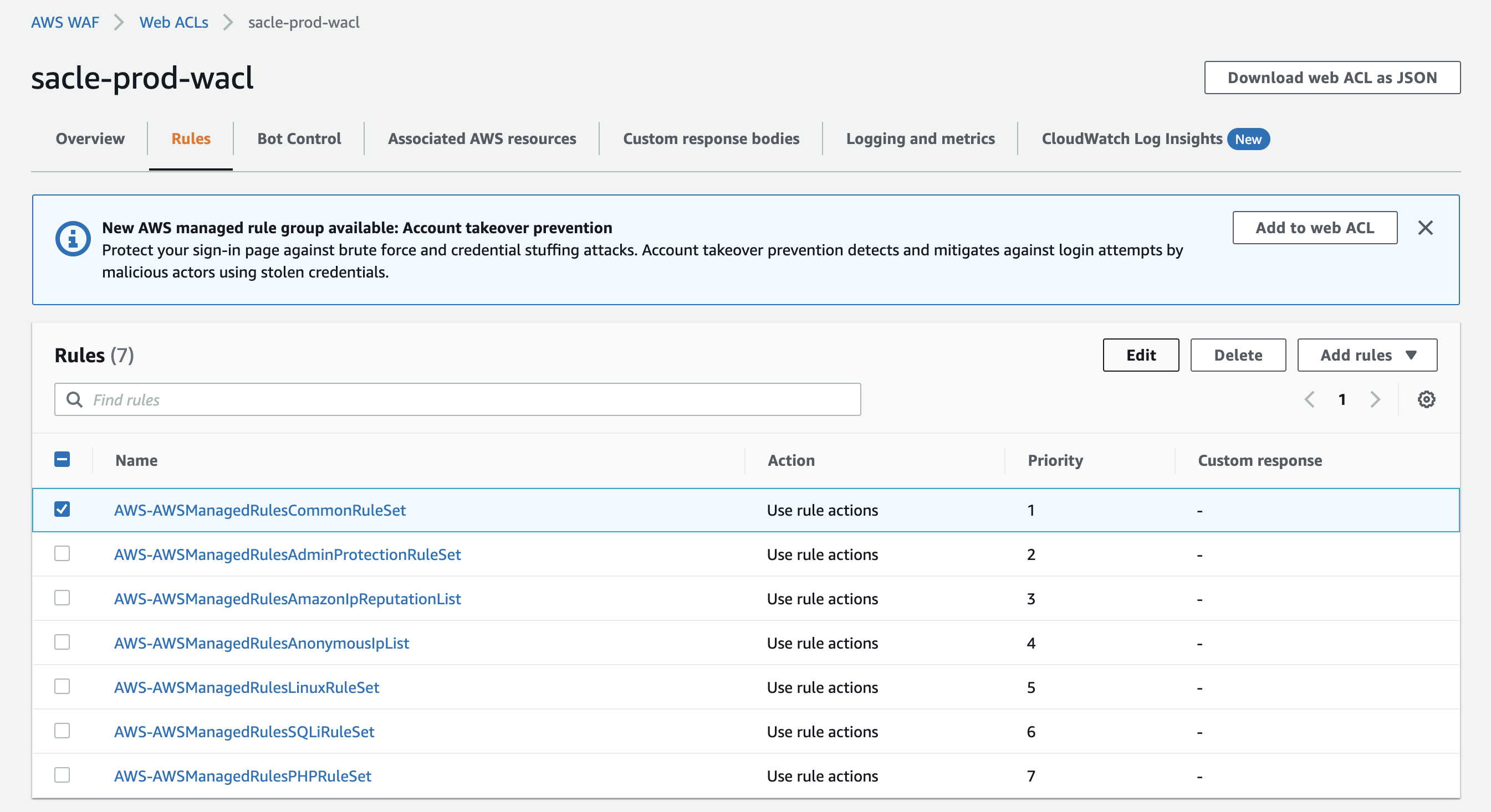 1. Web ACL Rule Set 편집