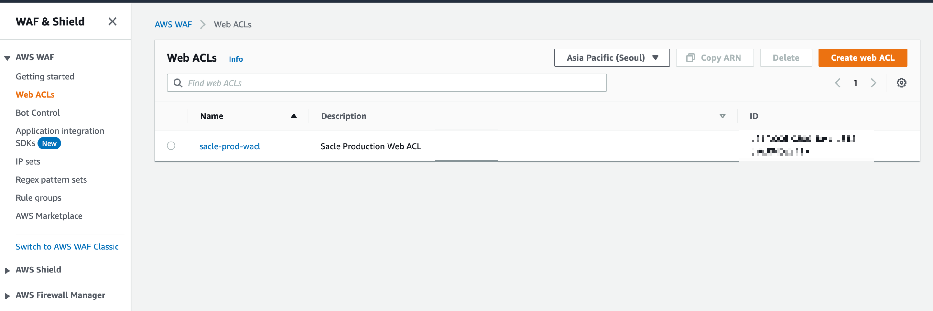 AWS WAF에서 Web ACL을 선택합니다.