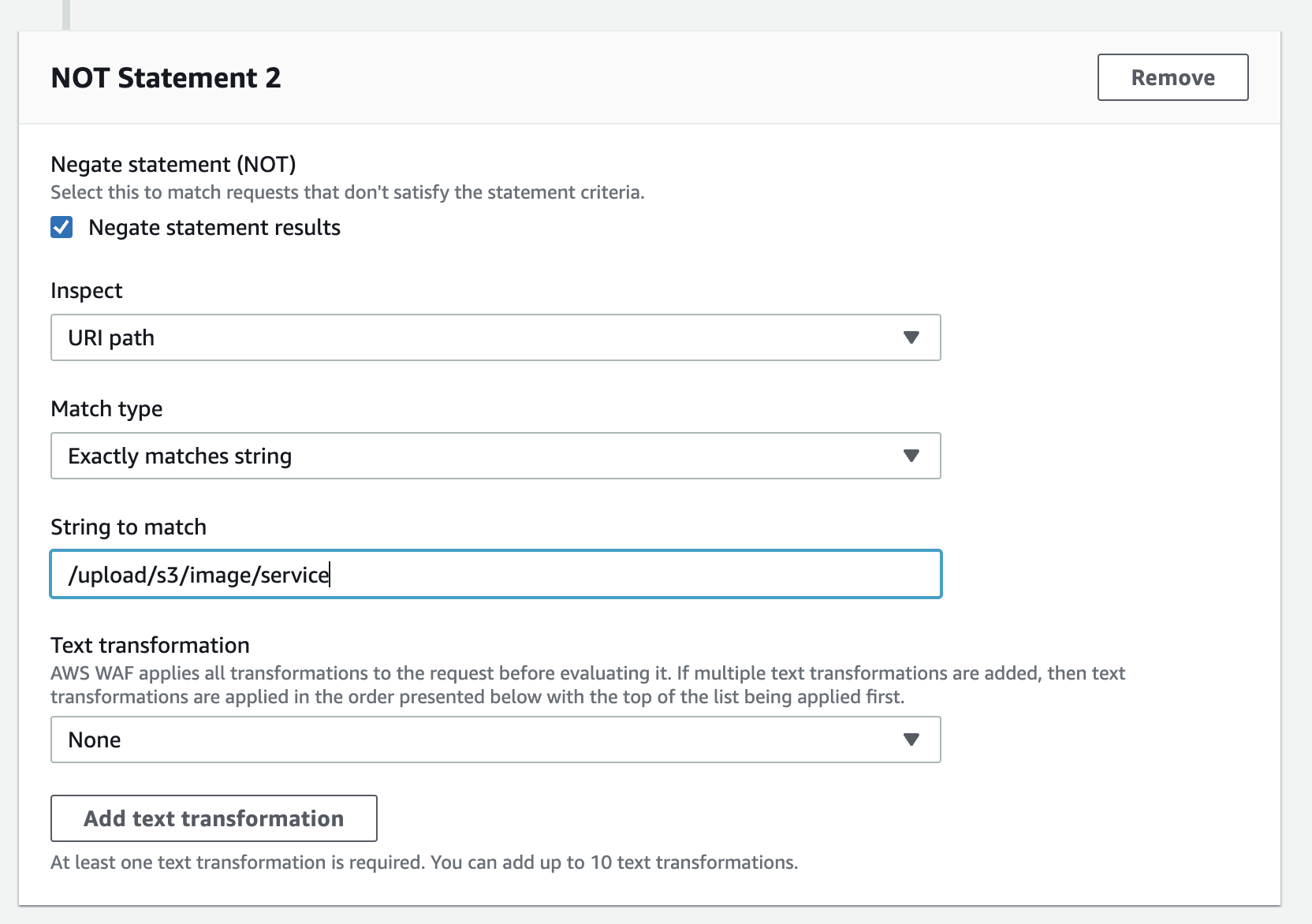 String to match - 업로드 서비스 URI (/upload/s3/image/service) 입력합니다.