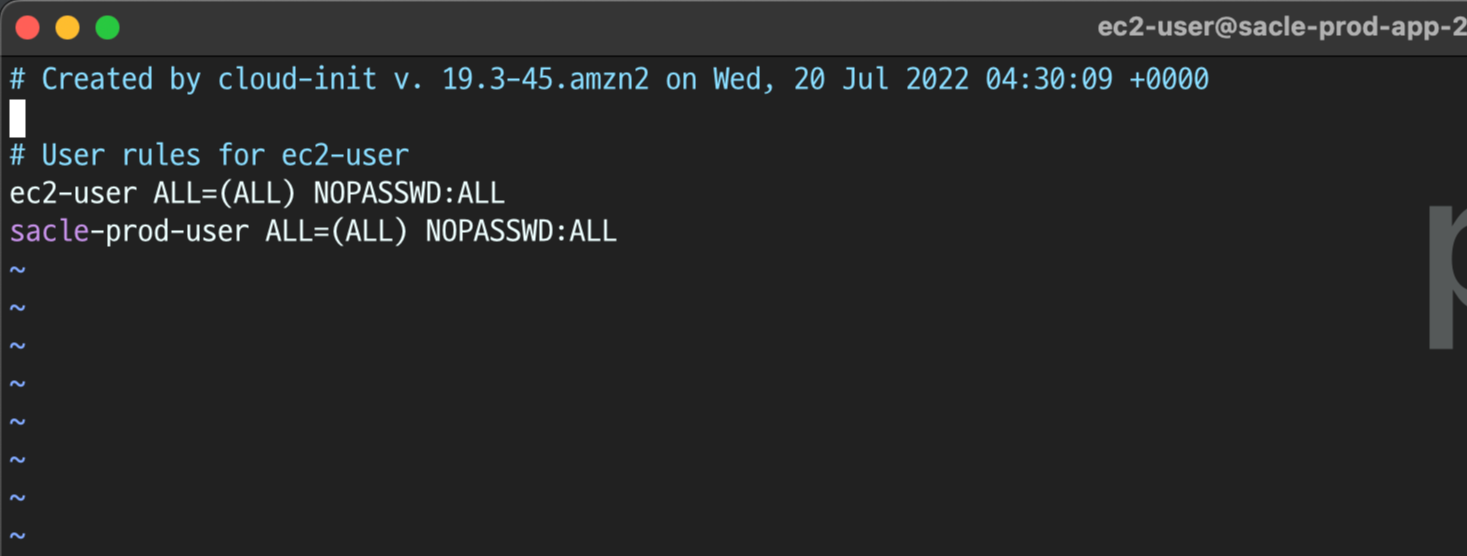 ec2-user ALL=(ALL) NOPASSWD:ALL